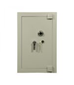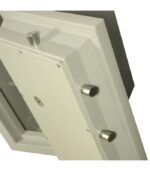 Une poignée ergonomique permet de commander aisément le maniement des pênes et le mouvement de la porte. Le mouvement de cette poignée est condamné par une serrure à clé de haute sécurité à double pannetons (certifiée VDS classe A) et d’une serrure à combinaison 3 disques (1 million de combinaisons). En outre, un délateur se déclenche immédiatement en cas d’attaque thermique et re-bloque la serrure.