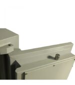 Porte : épaisseur totale de 135mm. Elle comporte la même protection que le corps. Elle est suspendue sur des pivots extérieurs permettant l’ouverture de celle-ci à 180°. Son châssis est composé de profils spéciaux formant escalier sur les 4 côtés.